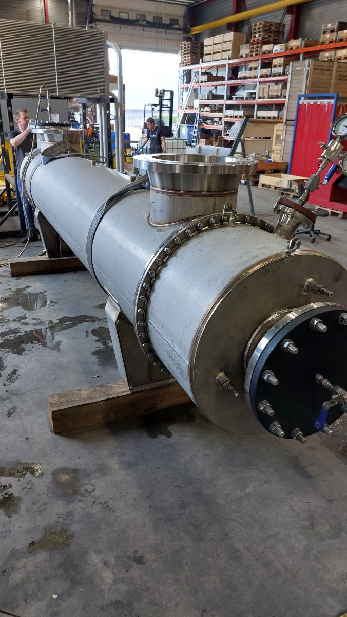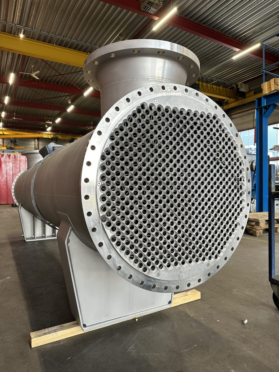 Het betreft een Shell & Tube warmtewisselaar. Een vaste pijpplaat warmtewisselaar met een removable bonnet en mogelijkheid tot injectie, TEMA type BEM. Geheel in RVS304(L) volgens ASME VIII Div.1
