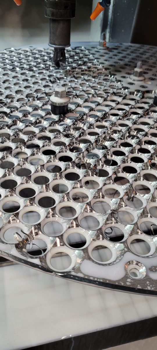 Vanwege de processpecificaties van de gebruiker is een trechterplaat geïnstalleerd om het neerslaan van vloeistof te voorkomen.